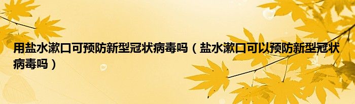 本文,用盐水漱口可预防新型冠状病毒吗,盐水漱口可以预防新型冠状病毒吗到此就分享完毕,希望对大家有所帮助。