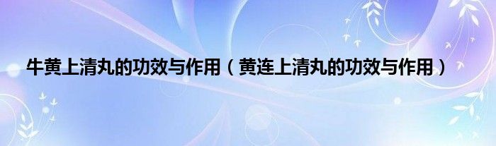 本文,牛黄上清丸的功效与作用,黄连上清丸的功效与作用到此就分享完毕,希望对大家有所帮助。