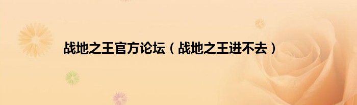 大家好,小问来为大家解答以上问题。战地之王官方论坛,战地之王进不去这个很多人还不知道,现在让我们一起来看看吧!