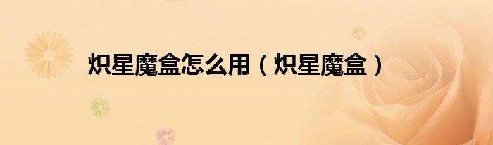 以上就是【炽星魔盒怎么用,炽星魔盒】相关内容。