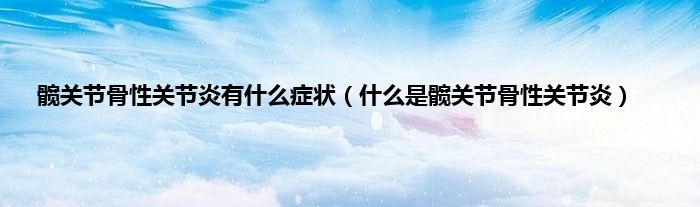 本文,髋关节骨性关节炎有什么症状,什么是髋关节骨性关节炎到此就分享完毕,希望对大家有所帮助。