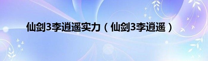 大家好,小问来为大家解答以上问题。仙剑3李逍遥实力,仙剑3李逍遥这个很多人还不知道,现在让我们一起来看看吧!