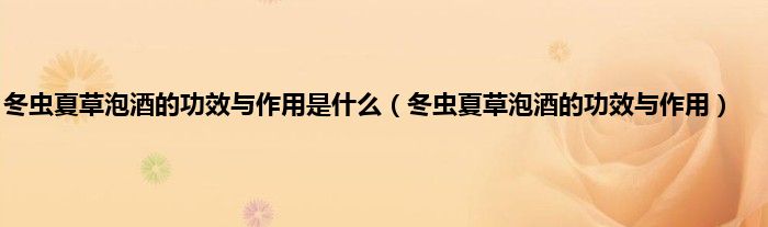 本文,冬虫夏草泡酒的功效与作用是什么,冬虫夏草泡酒的功效与作用到此就分享完毕,希望对大家有所帮助。