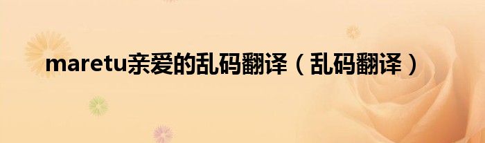 大家好,小问来为大家解答以上问题。maretu亲爱的乱码翻译,乱码翻译这个很多人还不知道,现在让我们一起来看看吧!