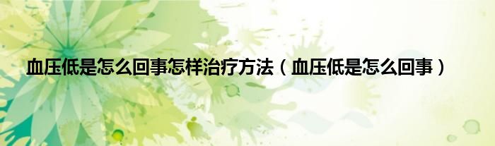 本文,血压低是怎么回事怎样治疗方法,血压低是怎么回事到此就分享完毕,希望对大家有所帮助。