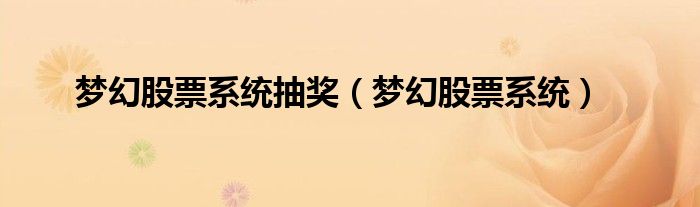 大家好,小问来为大家解答以上问题。梦幻股票系统抽奖,梦幻股票系统这个很多人还不知道,现在让我们一起来看看吧!