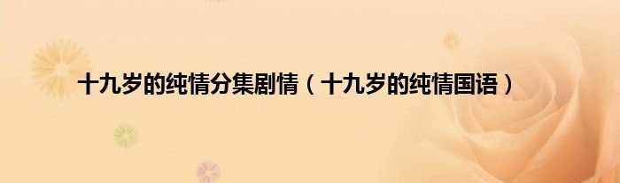 以上就是【十九岁的纯情分集剧情,十九岁的纯情国语】相关内容。