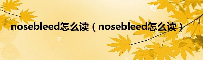 以上就是【nosebleed怎么读,nosebleed怎么读】相关内容。