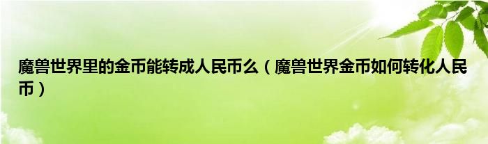 大家好,魔兽世界里的金币能转成人民币么,魔兽世界金币如何转化人民币很多人还不知道,现在让我们一起来看看吧!