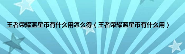 大家好,王者荣耀蓝星币有什么用怎么得,王者荣耀蓝星币有什么用很多人还不知道,现在让我们一起来看看吧!