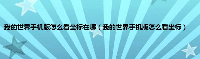 本文,我的世界手机版怎么看坐标在哪,我的世界手机版怎么看坐标到此就分享完毕,希望对大家有所帮助。