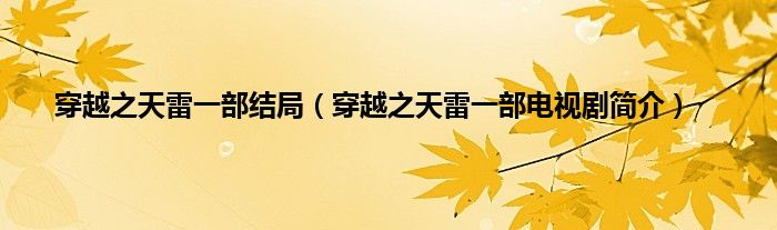 本文,穿越之天雷一部结局,穿越之天雷一部电视剧简介到此就分享完毕,希望对大家有所帮助。