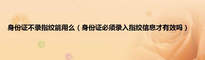 本文,身份证不录指纹能用么,身份证必须录入指纹信息才有效吗到此就分享完毕,希望对大家有所帮助。