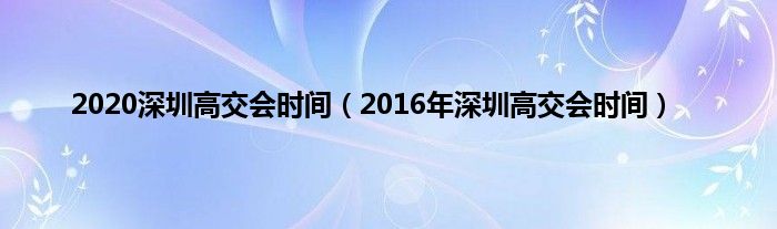 本文,2020深圳高交会时间,2016年深圳高交会时间到此就分享完毕,希望对大家有所帮助。