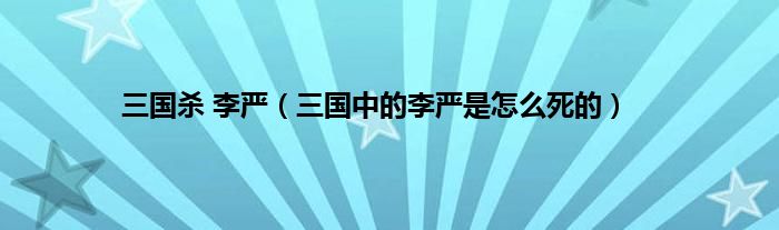本文,三国杀 李严,三国中的李严是怎么死的到此就分享完毕,希望对大家有所帮助。