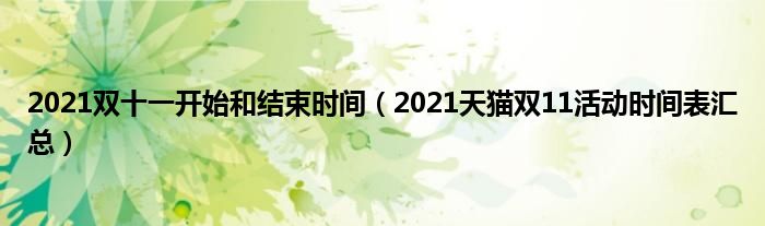本文,2021双十一开始和结束时间,2021天猫双11活动时间表汇总到此就分享完毕,希望对大家有所帮助。