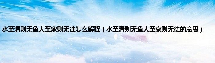 本文,水至清则无鱼人至察则无徒怎么解释,水至清则无鱼人至察则无徒的意思到此就分享完毕,希望对大家有所帮助。
