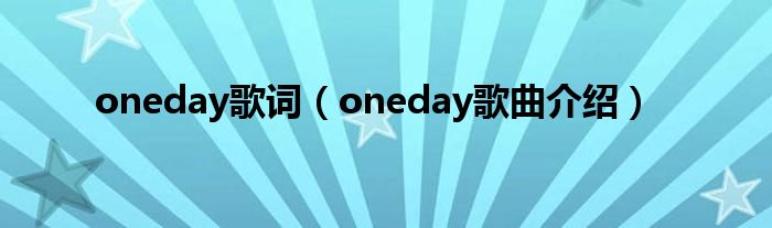 大家好,oneday歌词,oneday歌曲介绍很多人还不知道,现在让我们一起来看看吧!