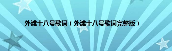 大家好,外滩十八号歌词,外滩十八号歌词完整版很多人还不知道,现在让我们一起来看看吧!