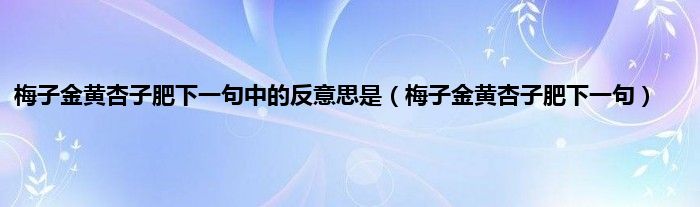 大家好,梅子金黄杏子肥下一句中的反意思是,梅子金黄杏子肥下一句很多人还不知道,现在让我们一起来看看吧!