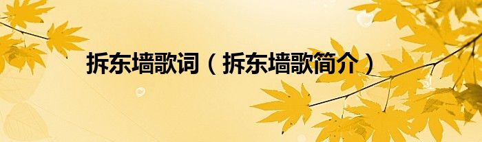 本文,拆东墙歌词,拆东墙歌简介到此就分享完毕,希望对大家有所帮助。