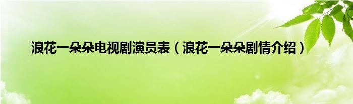 本文,浪花一朵朵电视剧演员表,浪花一朵朵剧情介绍到此就分享完毕,希望对大家有所帮助。