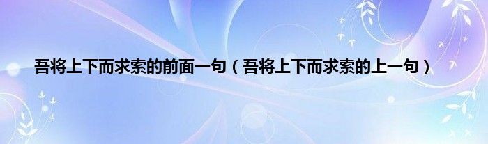 本文,吾将上下而求索的前面一句,吾将上下而求索的上一句到此就分享完毕,希望对大家有所帮助。