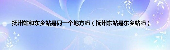 大家好,抚州站和东乡站是同一个地方吗,抚州东站是东乡站吗很多人还不知道,现在让我们一起来看看吧!