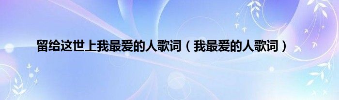 以上就是【留给这世上我最爱的人歌词,我最爱的人歌词】相关内容。