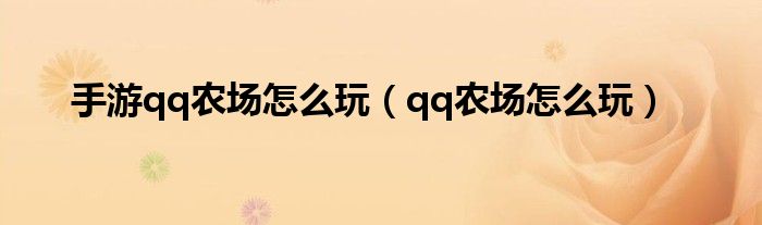 以上就是【手游qq农场怎么玩,qq农场怎么玩】相关内容。