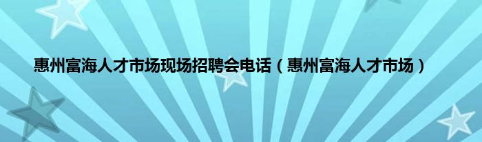 大家好,小问来为大家解答以上问题。惠州富海人才市场现场招聘会电话,惠州富海人才市场这个很多人还不知道,现在让我们一起来看看吧!